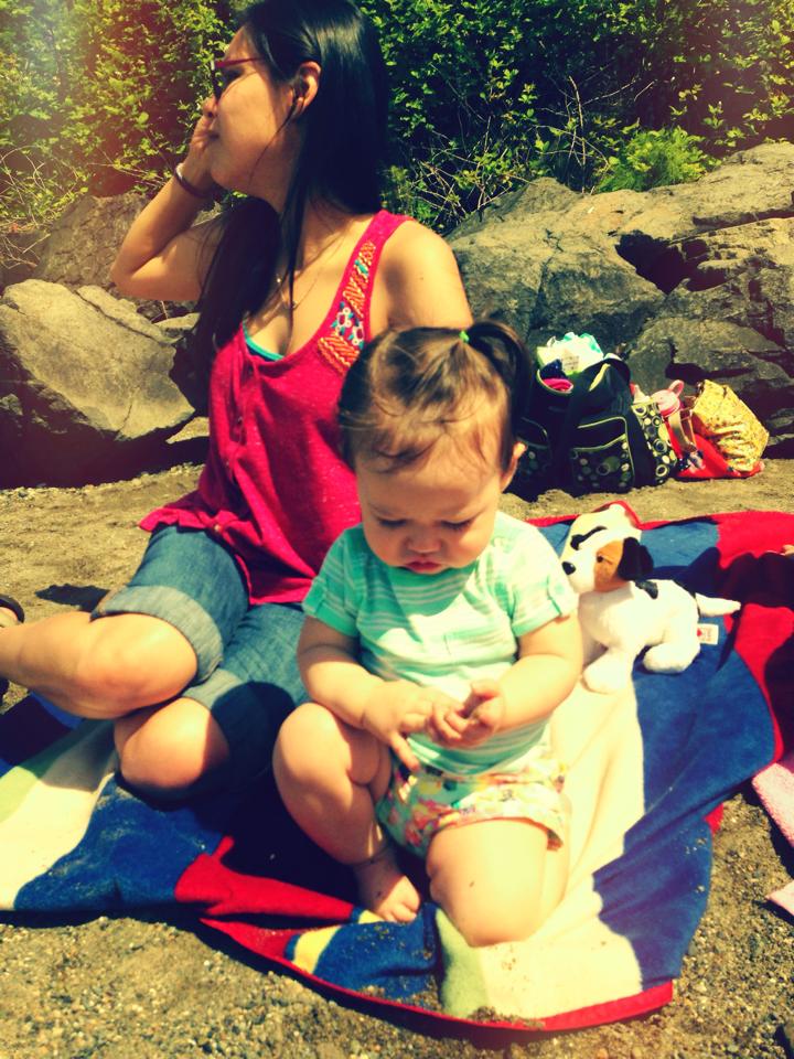 Brace yourself. It’s probably not going to happen the way you want it. Chances are your little one isn’t going to nap at their normal time and you have to be OK with that. The result of Cat not napping was that when we took off on a big family hike she passed out in her carrier and slept through most of it. That was fine by me. She got some rest and I got to enjoy the beauty of the outdoors without worrying about her trying to crawl out of my arms. If you are dead set on getting your baby to nap at their normal schedule then I’d suggest bringing your pack-n-play and keeping it under a shaded area away from the campfire. The campfire is where people tend to congregate and is where there is the most noise. Plus, the smoke moves around a lot depending on the shifting of the wind and you don’t want your baby to inhale smoke while sleeping. We had trouble with Cat’s pack-n-play getting full of dirt so be sure to give your child a wipe down before putting them down.