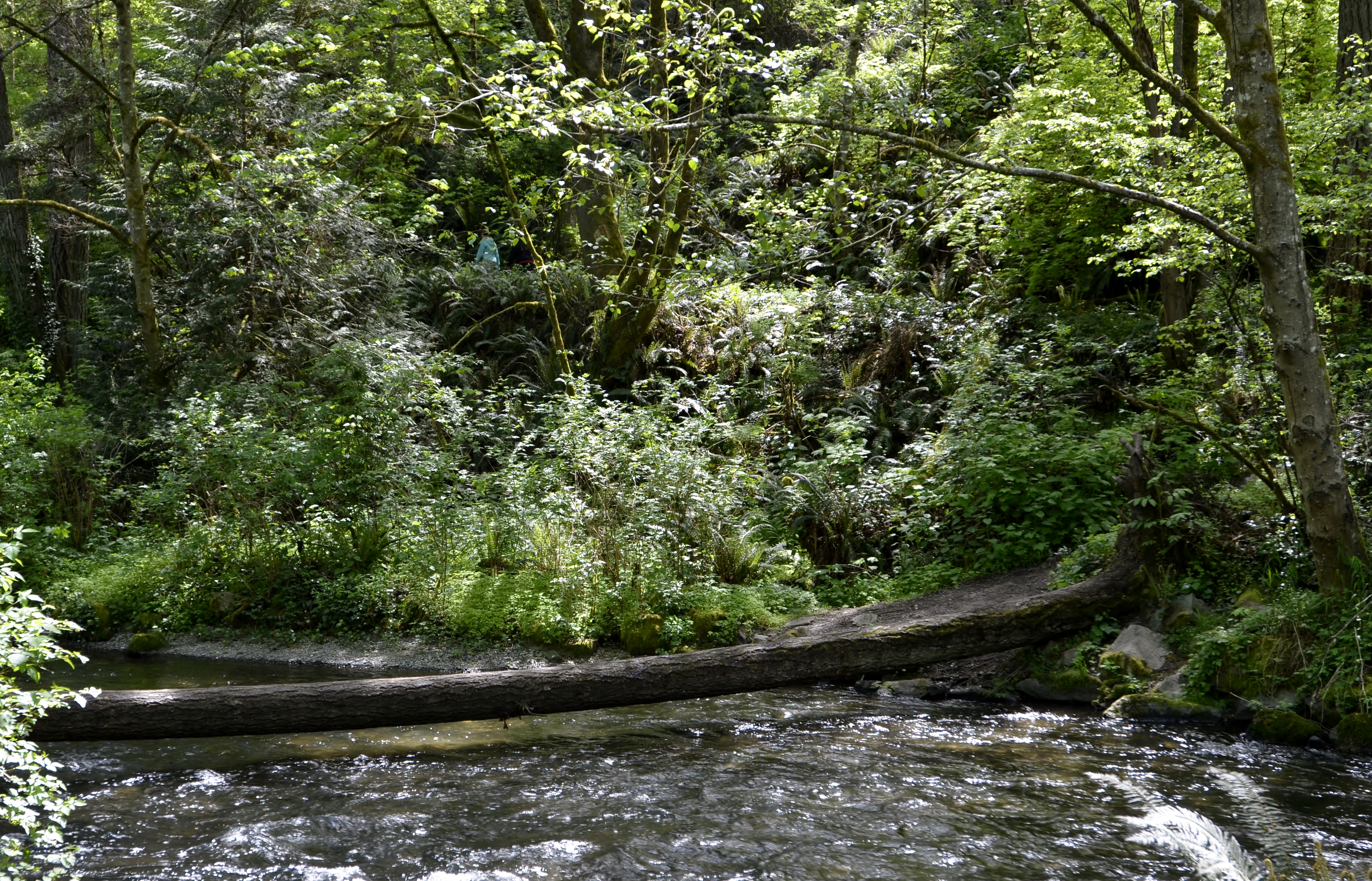 There are paths on the other side of Chambers Creek, and the only way we could see to get to them is by crossing this log. Be careful, as the water flows fast and is somewhat deep underneath it.