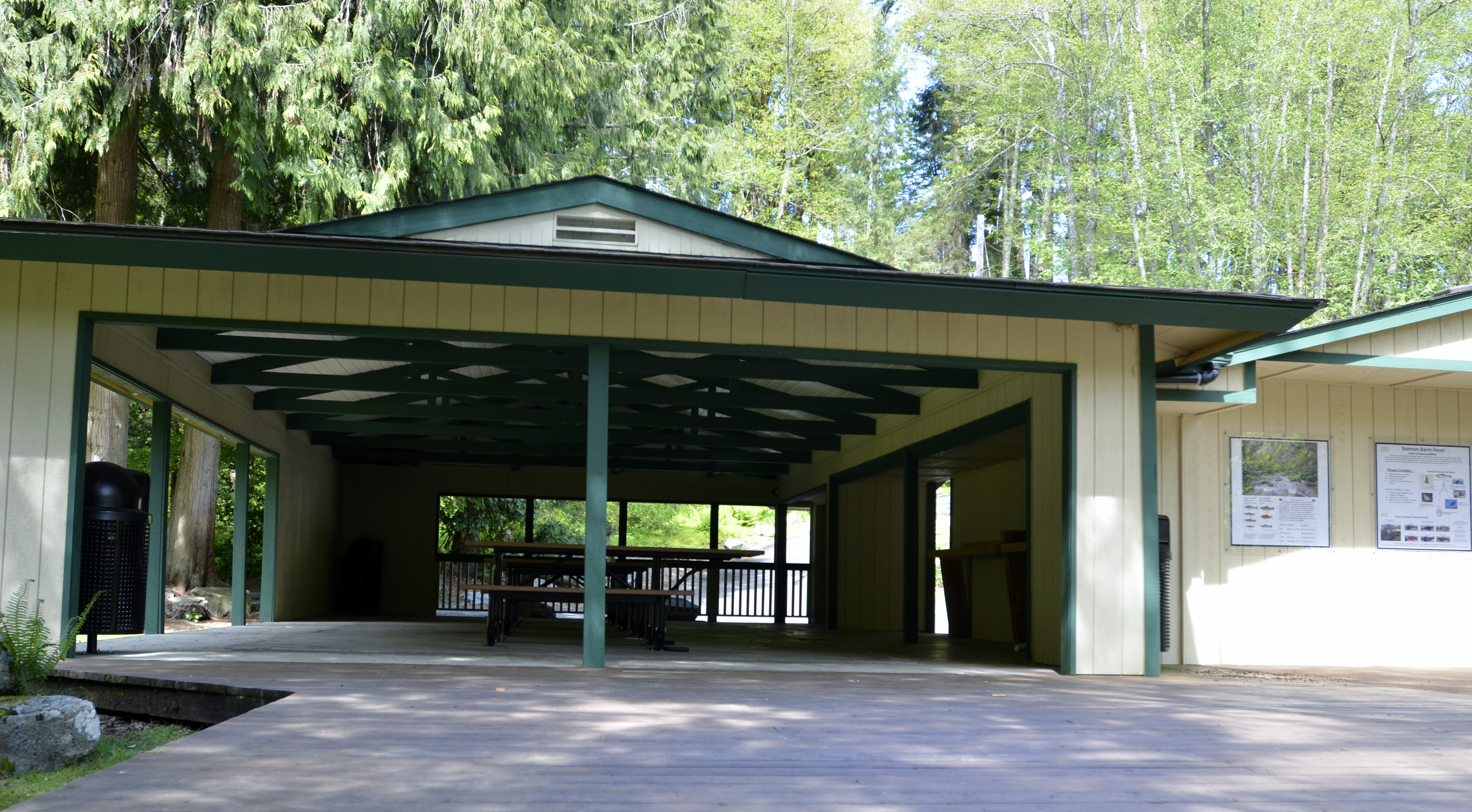 There are 10 parking spots or so at the bottom of a narrow, steep, one-lane road into the park. There is a large picnic shelter, an outdoor fireplace (which doesn’t appear to be open to the public) and bathrooms. The structures are part of the former Kobayashi House, which according to The News Tribune was built in 1964 in a traditional Japanese construction for a Weyerhaeuser executive and later sold to the Kobayashi family. In 2000 according to The News Tribune, the Kobayashi family offered the home to the city when the family planned to move to Japan. After years of vandalism and eventually a fire, the house was converted into the structures you see today.