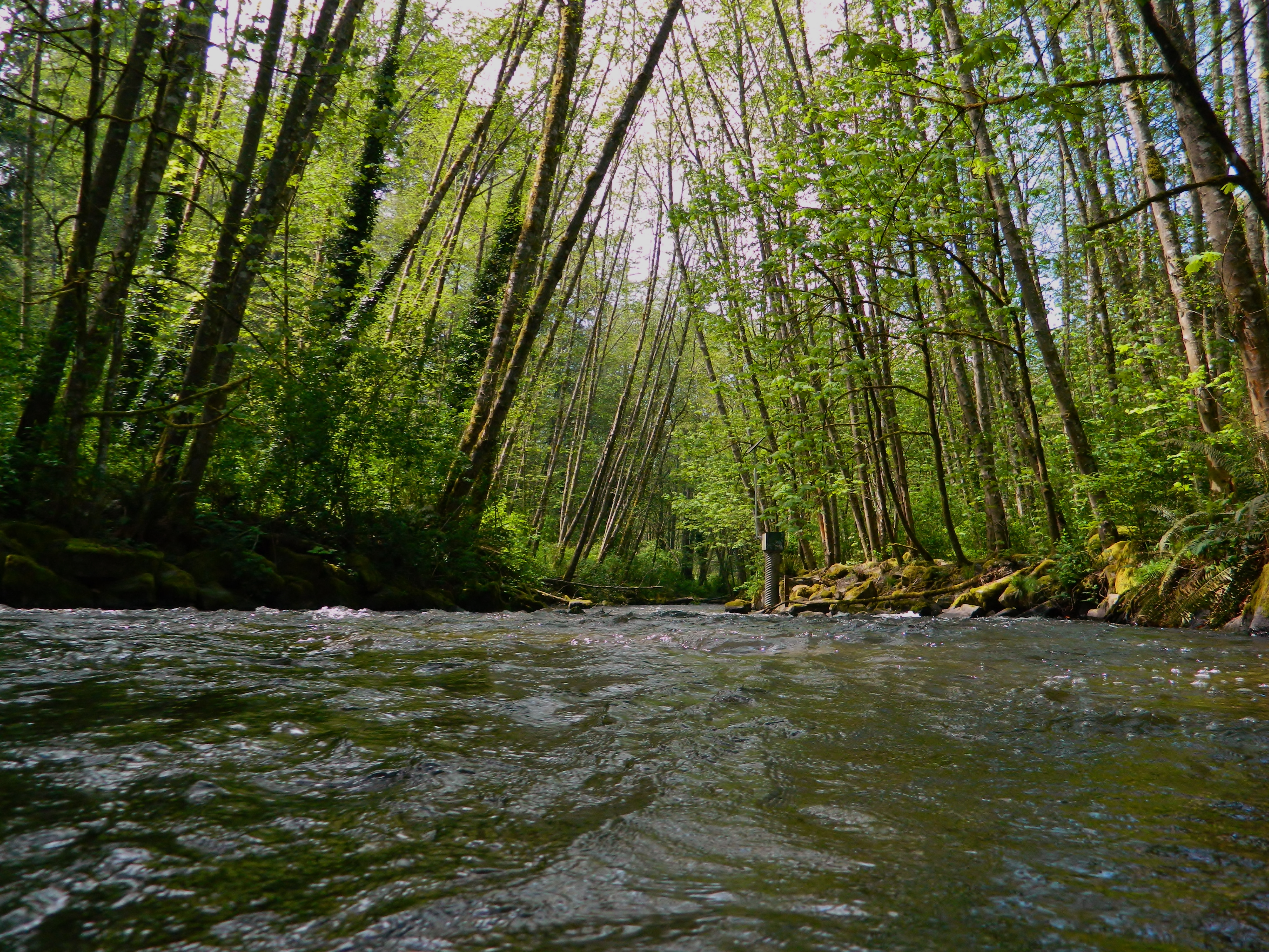 But the former house makes up just a small part of the wonderful park. There are trails heading in both directions from the parking lot, with one going upstream next to Leach Creek and into an evergreen forest. The other, which is the main trail, heads downstream following Chambers Creek, eventually dead-ending at a peaceful spot along the river.