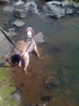 The giant rock face across the river from this vantage point is called The Castle, and it is extremely foreboding. You can hike upstream from here, though we never have. This is a nice place to wade and enjoy the spray off the upper falls and have a picnic.