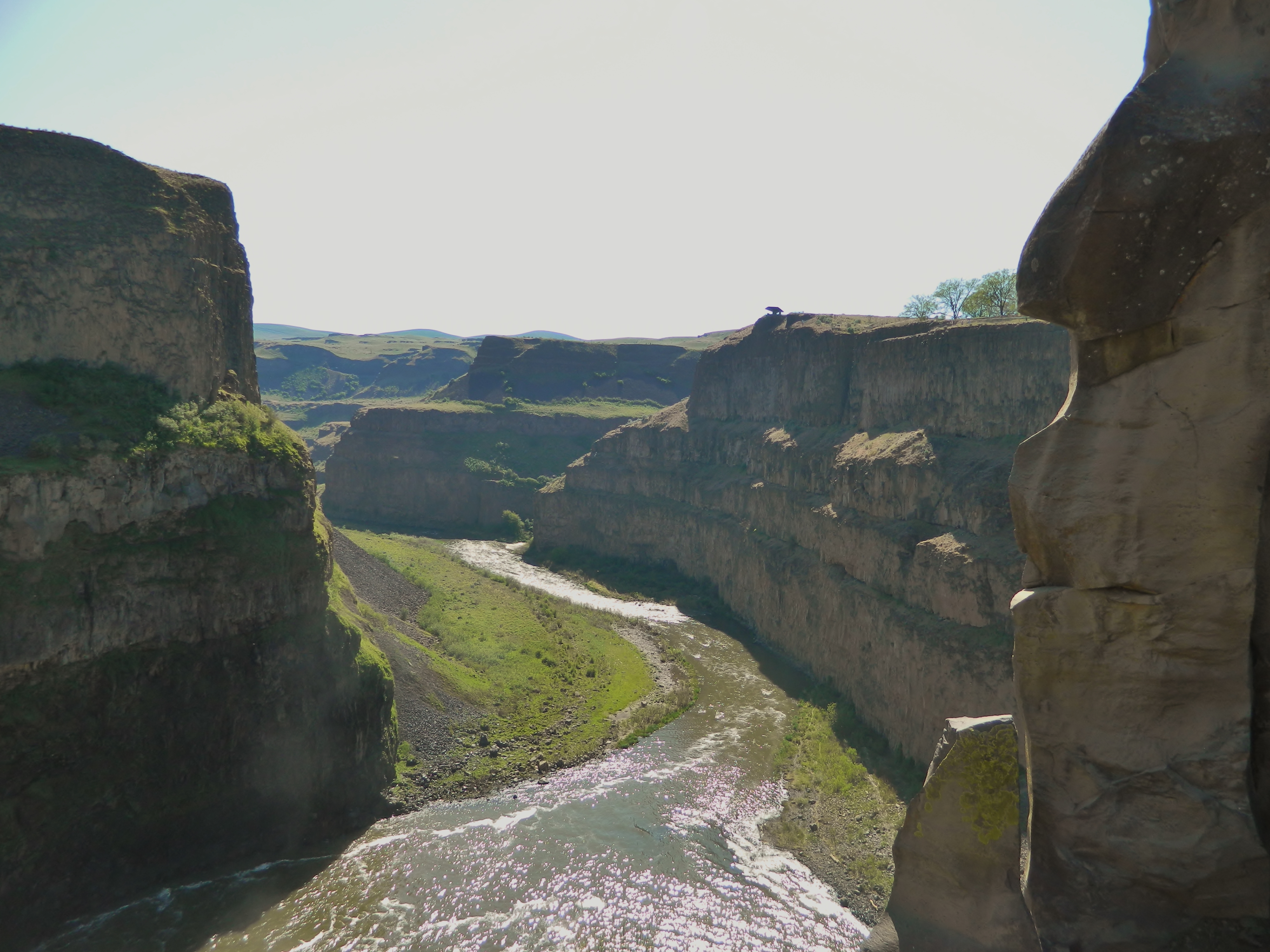Looking down the Palouse River toward Palouse Falls, which is just around the corner. Avoid getting into the water here, as there are strange, whirlpool currents that can quickly take you downstream.