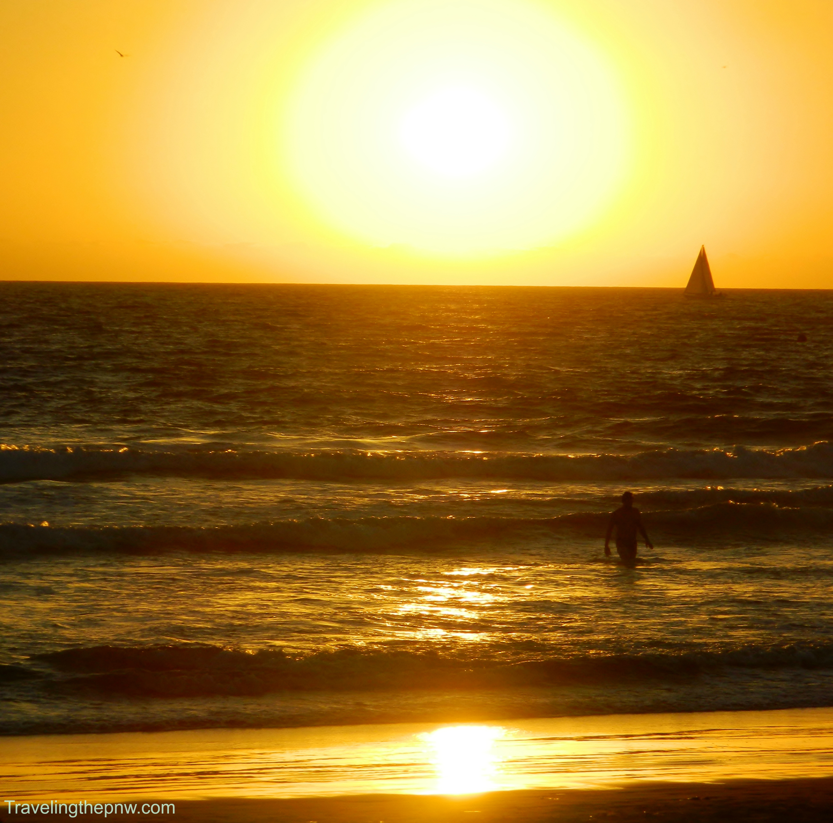 Our second night staying on the beach, we went down to Venice Beach so Catarina could play in the sand. This time I decided to wait until the sun actually set – much to the annoyance, I think, of Veronica, Catarina and Veronica’s parents, who were with us. But it was well worth it. I got some great shots of the sun playing on the top of a breaking wave, and I also used some objects to give the sunset some depth, including a bird and a sailboat.