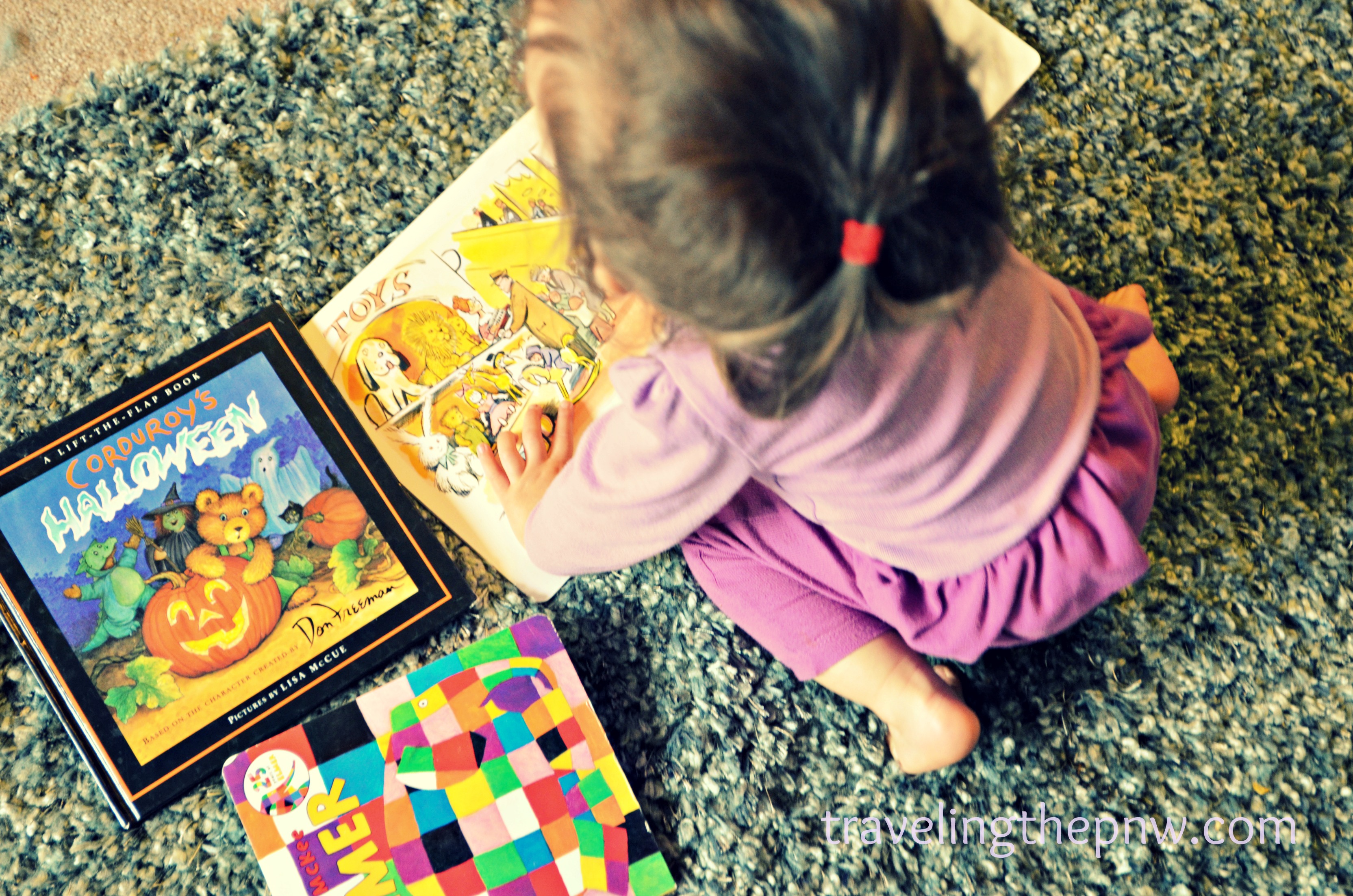 Catarina is still not talking, but it is not for lack of reading. This is the first “real” book she owned, with a story line and recurring characters. Her Spokane grandparents – Robbie and Randy Craker – got it for her for Christmas.