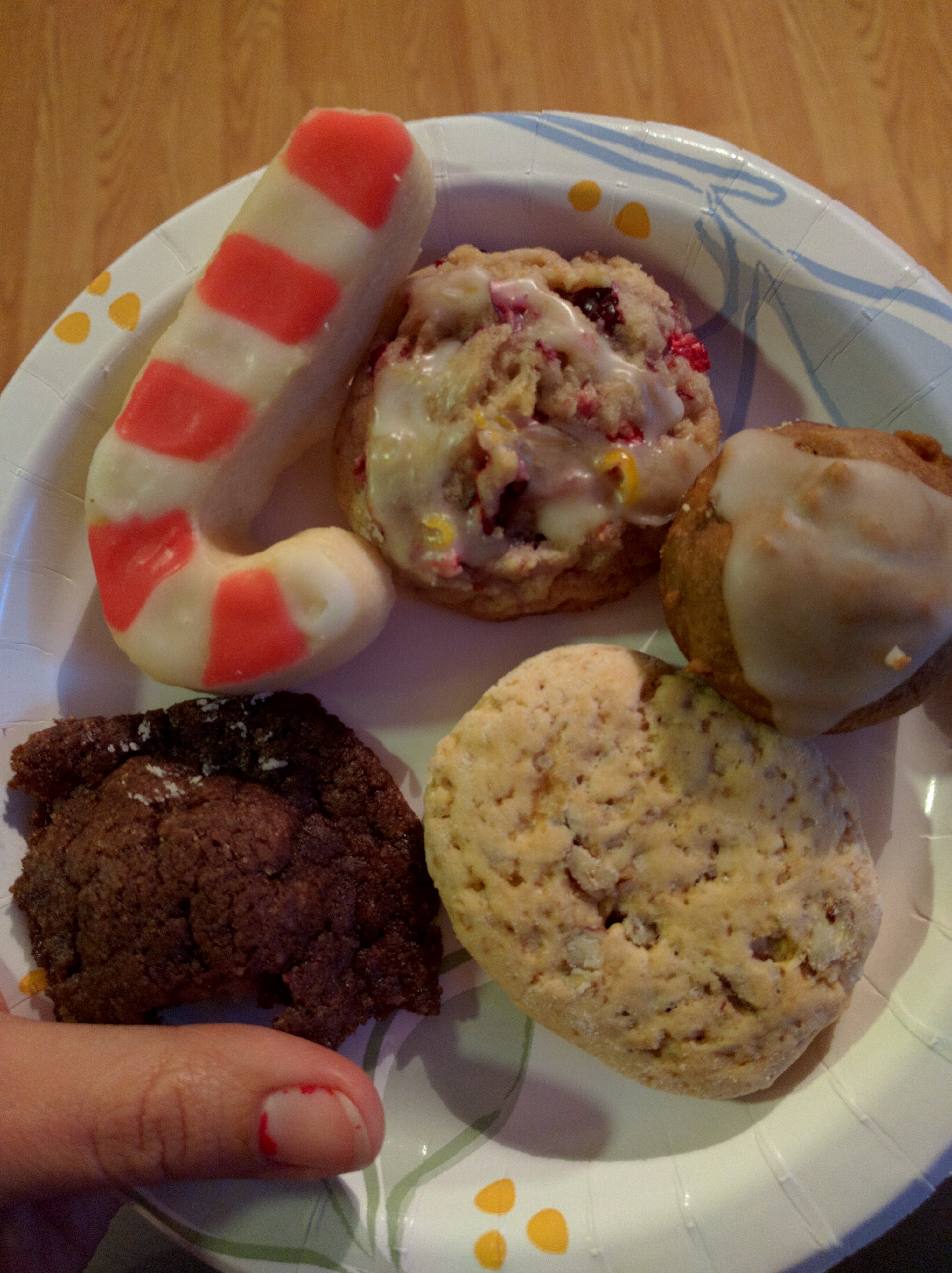 We had about seven people attend, so there were a variety of cookies. Delicious cookies. Vegan cookies!