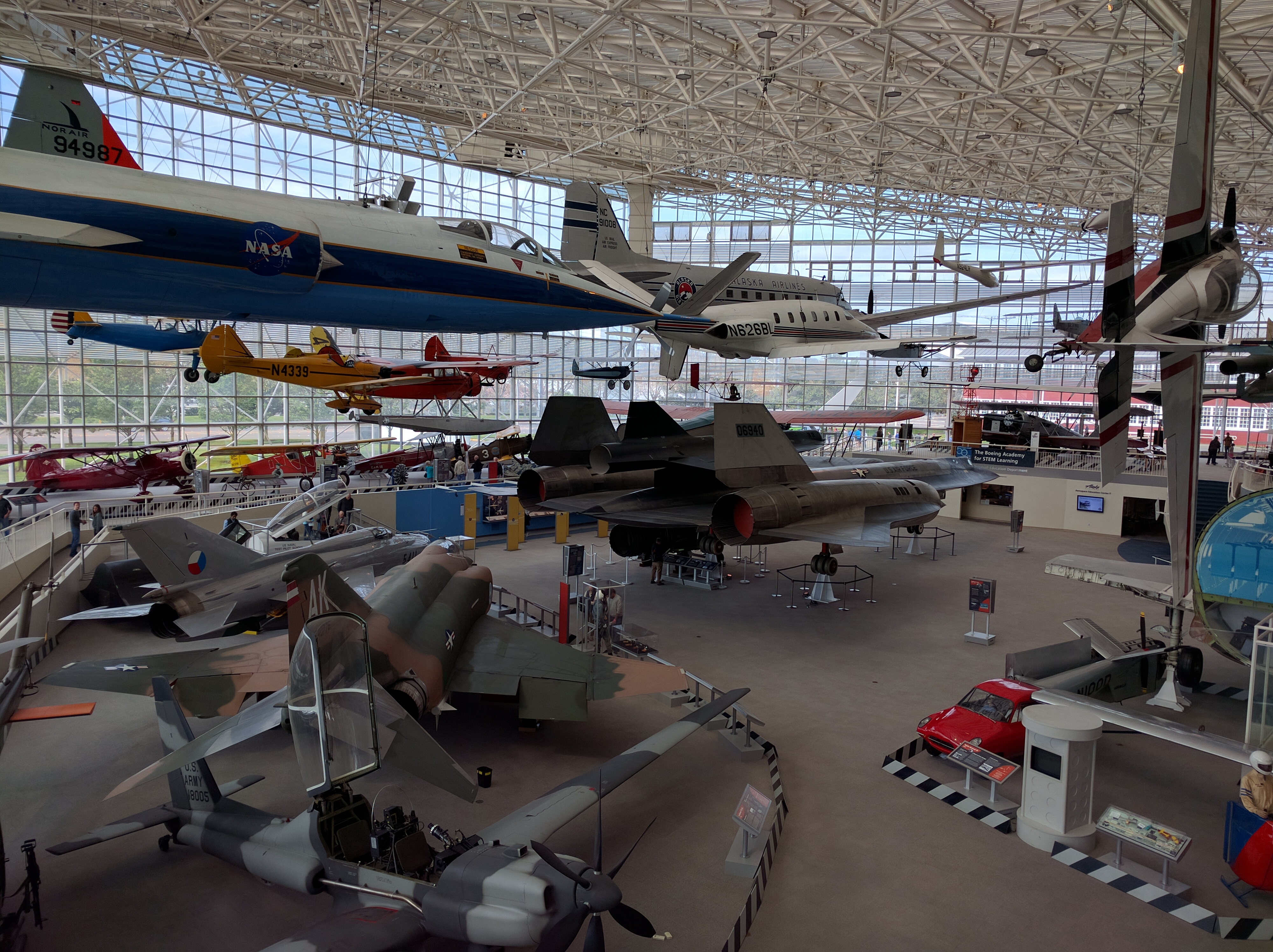 Great Gallery: Huge room filled with at least 25 planes and helicopters of varying size and type, with some on the floor to be walked around and seen up close, to others hanging from all angles from the ceiling.