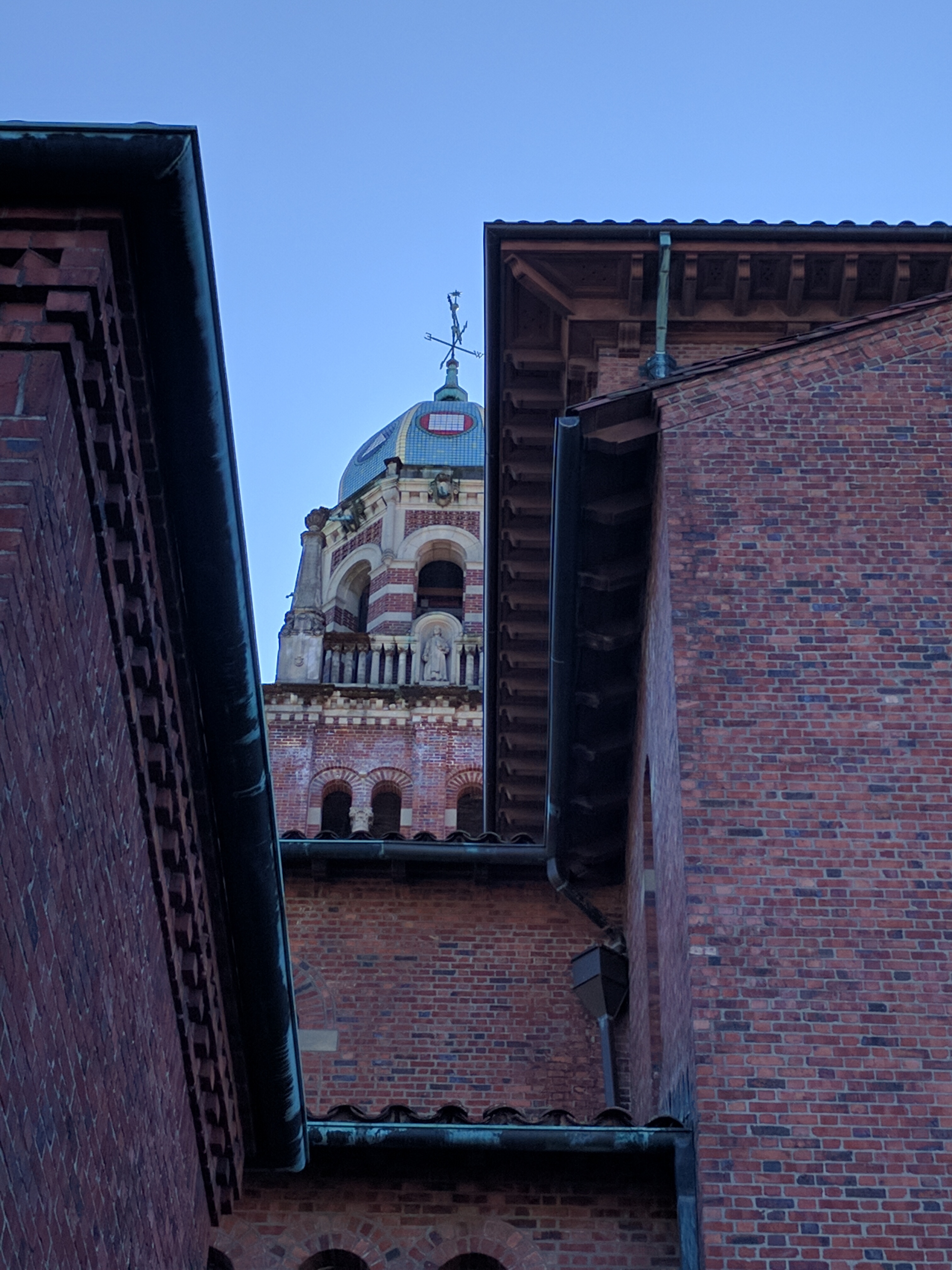 The coolest part of this building, though, is certainly the tower. Mike said it was closed because the stairway is in disrepair. I tried to convince him to take me up anyway, but my luck ran out at that point.