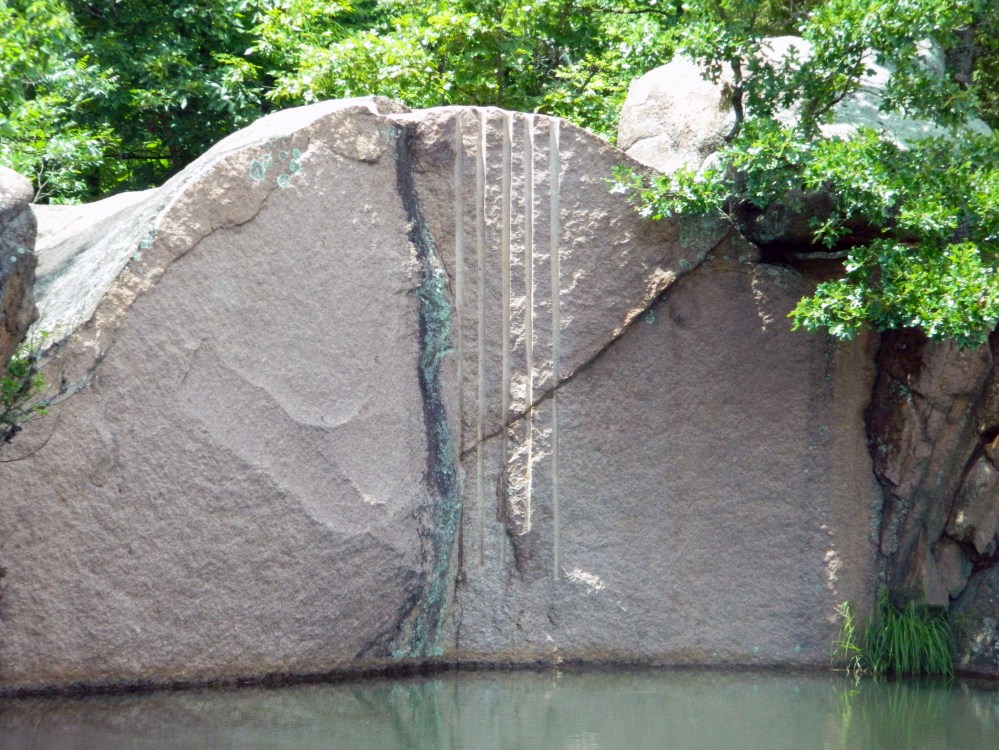 There are two pathways, one which is ADA accessible, that wind through the park. Initially we went off path and just climbed around, stumbling upon one of the old quarries which is now a lake. We saw prickly pear blooming beautiful yellow flowers, trees growing out of the rocks, and the remnants of the old quarry operations were still evident on some of the rock faces.