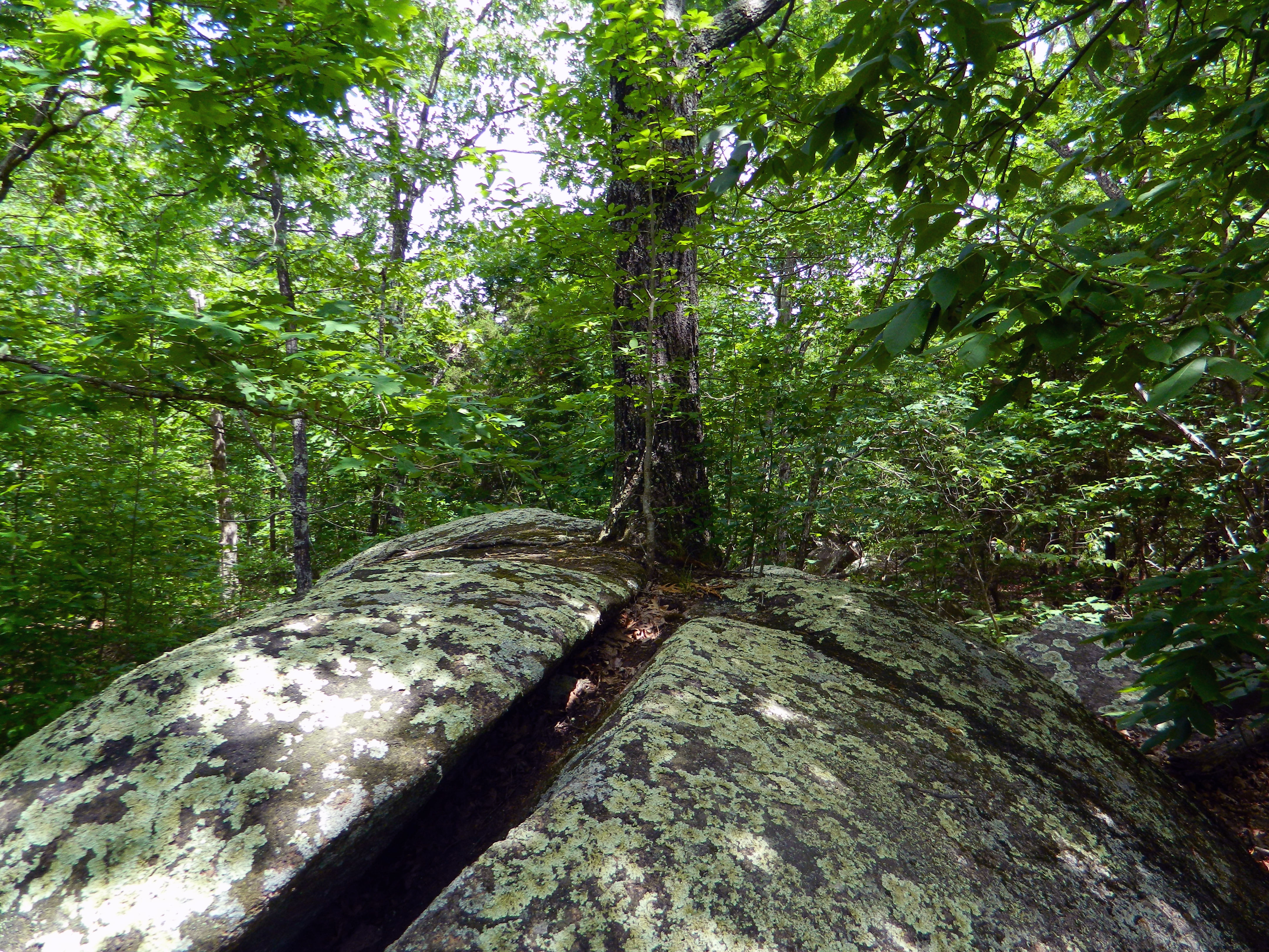 While winding your way through dense forests of deciduous trees you start to see rocky ridges, random rocks and other geological formations on the side of the road.