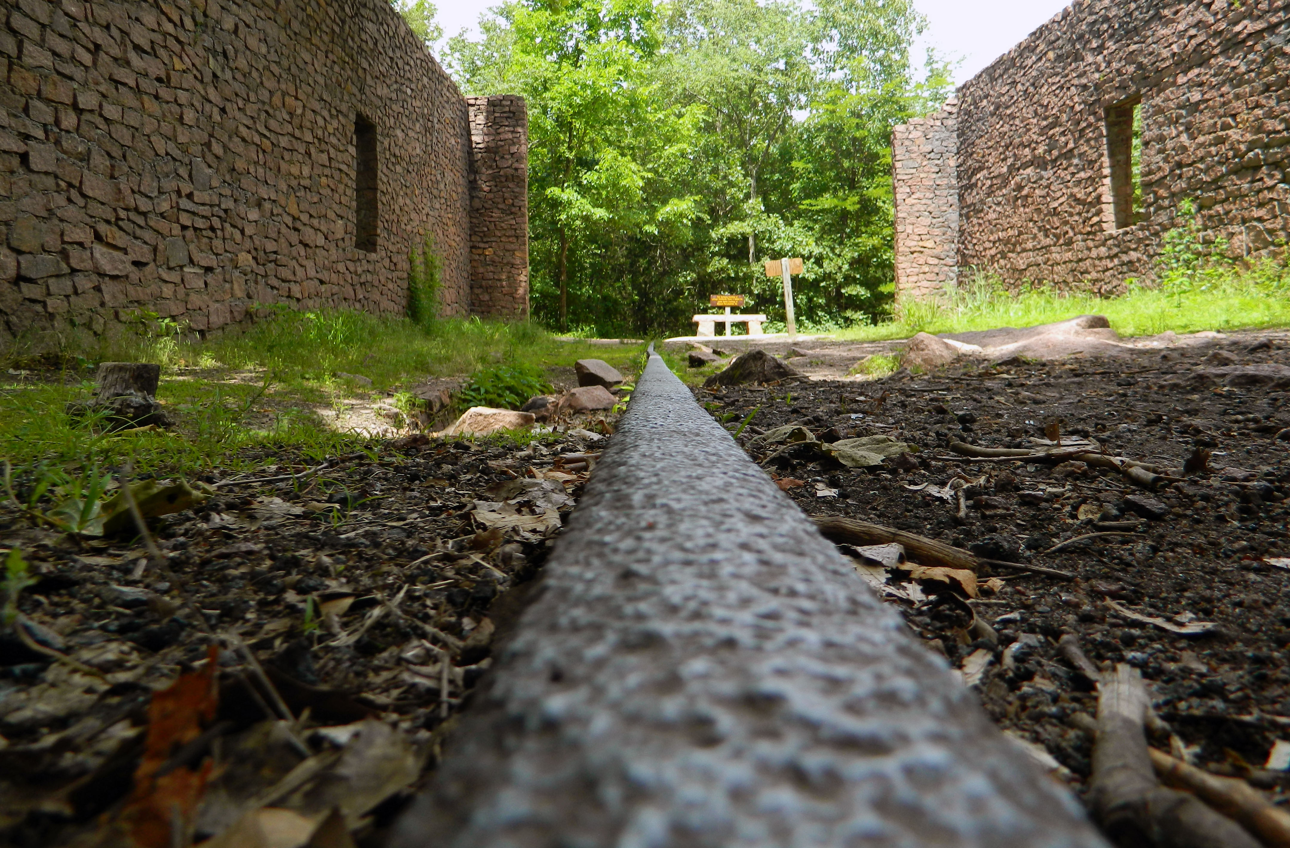 After lunch and a break in the car – Missouri is hot, by the way; it was 90 degrees with 60 percent humidity, which about killed this Northwesterner off – we headed up the main trail in an effort to find the old Engine House in the woods.