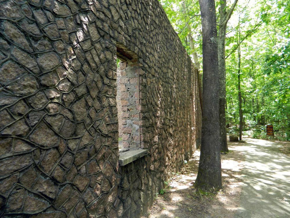 Three walls of the structure remain standing and there are still parts of the old rail line extending off into the woods. The building originally was used to repair train engines and cars from the Iron Mountain and Southern Railroad in the 1890s as well as service Sheehan Quarry operations in what is now the state park.